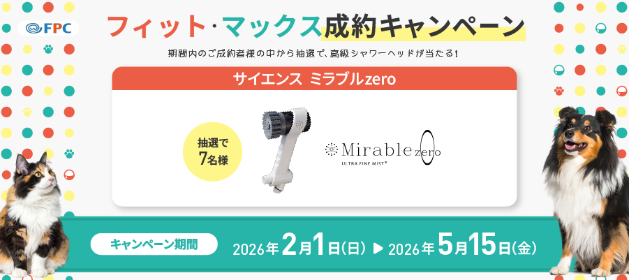 対象期間中にFPCの「ペットほけんフィット」または「ペットほけんマックス」をご成約されたお客様を対象に